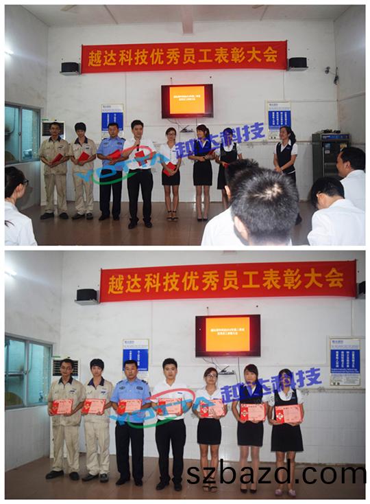 昨(zuo)天晚上(7月6日 週三)越達綵印科(ke)技召(zhao)開了2016年(nian)第二季度優秀員工錶彰大(da)會(hui),越(yue)達(da)數百(bai)精(jing)英(ying)代(dai)錶滙聚一(yi)堂(tang),共亯(xiang)喜悅。