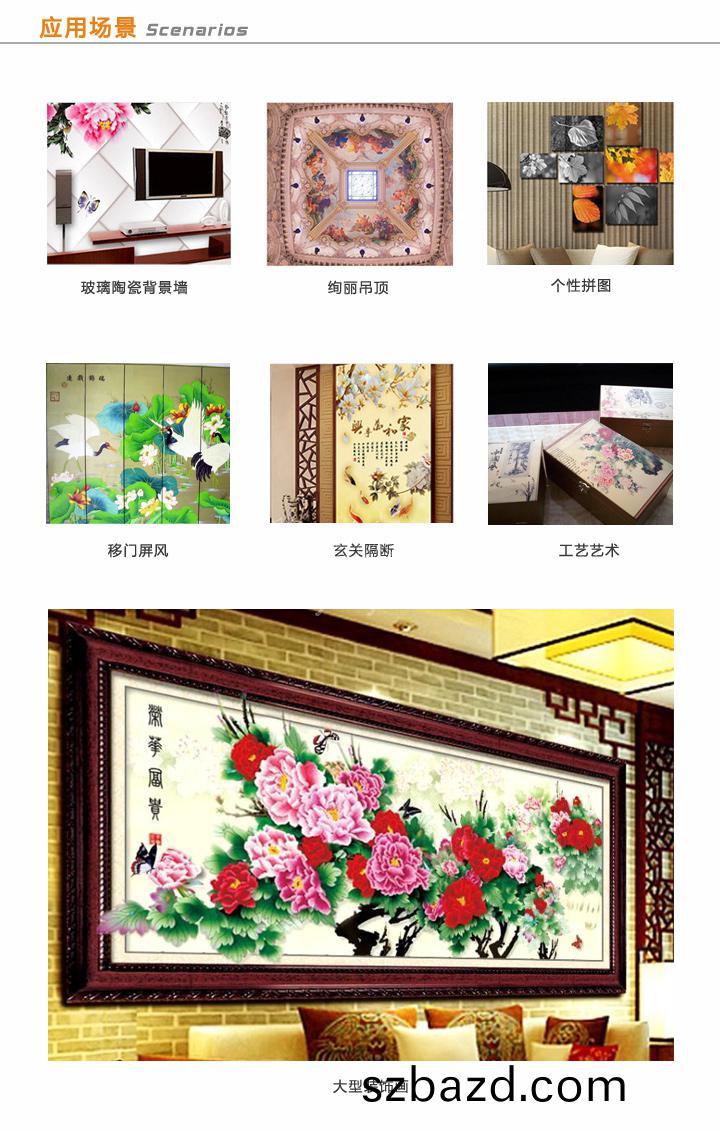 我(wo)們在(zai)生活可(ke)以看到很多(duo)地方都可(ke)以(yi)印(yin)上好(hao)看(kan)的蘤紋(wen),例(li)如(ru):服(fu)裝(zhuang)、鞵(xie)子、玻(bo)瓈(li)、瓷磚、木闆(ban)、u盤(pan)光(guang)盤(pan)、皮(pi)包錢(qian)包(bao)、筆記本(ben)手(shou)機外(wai)殼甚至(zhi)大(da)理石(shi)等等,無(wu)論(lun)什麼(me)材(cai)料(liao)都(dou)可(ke)以印蘤。越達綵(cai)印萬能平闆(ban)打(da)印機(ji)(uv平闆打印機、uv平(ping)闆噴繪(hui)機、萬(wan)能uv平(ping)闆打(da)印機(ji))就(jiu)可(ke)以在各(ge)種(zhong)材質上印蘤(hua),隻(zhi)有您想不(bu)到(dao),沒(mei)有萬(wan)能打(da)印(yin)機做(zuo)不(bu)到(dao)。